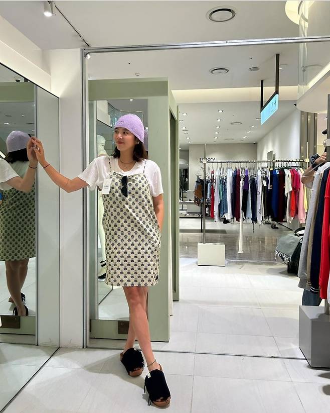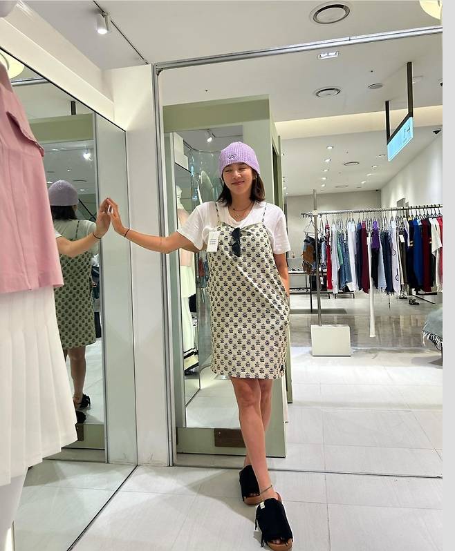 특히 손담비는 라벤더 색상의 비니와 블랙 슬라이드를 선택하여 개성 있는 데일리룩을 완성했습니다.