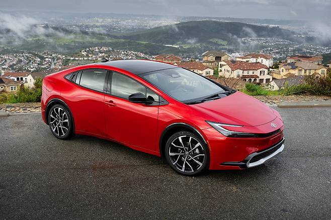 [5세대 프리우스 (2023~): 다시 태어난 하이브리드 HYBRID REBORN] 2023년, 'HYBRID REBORN'이라는 슬로건으로 5세대 프리우스를 출시했다. 이번 5세대 프리우스는 'Efficiency by design(디자인에 의한 효율성)'이라는 기존 프리우스의 철학을 계승하면서 더욱 날렵하고 스타일리시한 외관 디자인과 토요타의 최신 인테리어 레이아웃이 반영됐다.