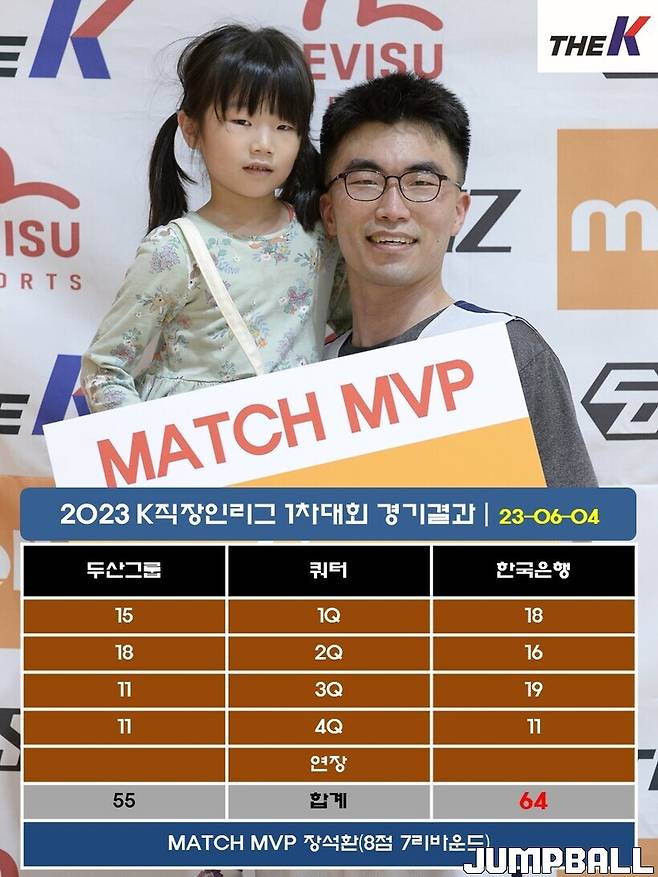 한편, 이 경기 EVISU SPORTS(https://www.evisusports.com/) MATCH MVP에는 고비 때마다 8점 7리바운드를 기록하며 팀을 승리로 이끈 한국은행 장석환이 선정되었다. 그는 ”오랜만에 경기에 나선 것 같은데 슛이 잘 들어갔다. 원래 미드레인지에서 슛을 많이 시도하려고 하고, 잘되면 팀에 도움이 될 것 같았다. 그리고 오늘 경기에서 승리에 일조한 것 같다“고 소감을 전했다.