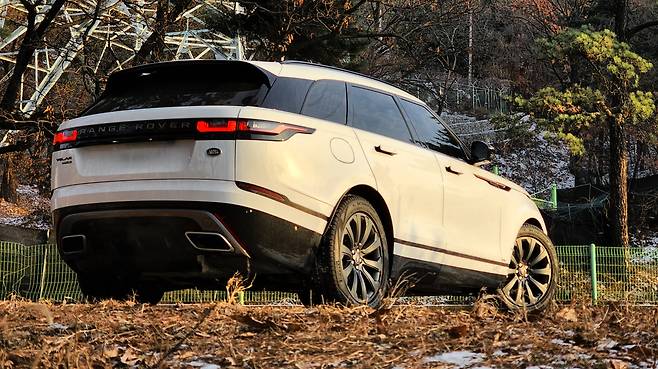 혁신은 프로파일에서 가장 잘 느껴진다. 스포티한 감각을 보여주는 DRL 그래픽은 물론, 헤드램프와 테일램프를 연결하는 '스웨이지'라인이 사선형으로 공격적인 스탠스를 만들어준다. 반면 루프라인은 뒤로 갈수록 낮아지며 역동적인 윤곽선을 형성한다. 플로팅 디자인 루프로 거의 마름모꼴 형태를 보여주는 그린하우스가 인상적이다. 스포티한 범퍼에서 연결되는 검은색 라인은 로커패널을 따라 후면부에서 꺾인다. 랜드로버가 레인지로버 벨라에서 처음 선보인 '오토플러시 도어핸들'은 기능적 감성의 아이콘과 같았다. 20인치 블랙휠도 디자인에 잘 어울린다.뒷모습도 매력적이다.