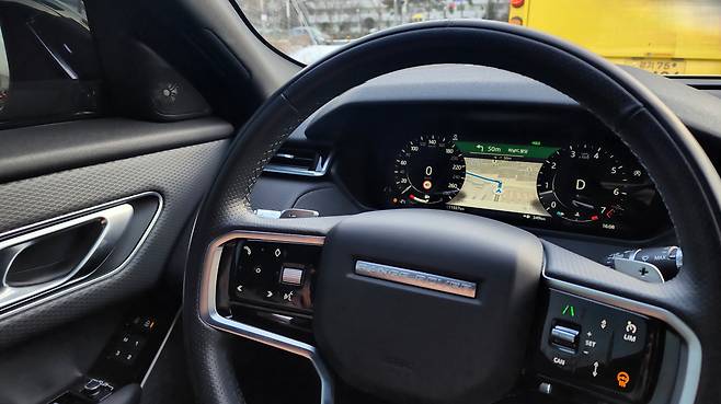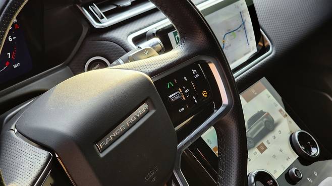 인테리어 디자인도 레인지로버의 테마가 느껴진다. 비교적 공간이 좁은 대신 선도적인 디지털화를 거쳤다. TFT 클러스터와 10인치 디스플레이, 그리고 센터페시아는 더 큰 화면의 LCD로 구성된다. 터치 패널은 직관성에 대한 불신이 있는데, 벨라는 각 디바이스마다 역할이 지정되어 있어 괜찮았다. 상단 디스플레이는 인포테인먼트와 오디오, 하단 디스플레이는 공조장치및 차량 기능 제어를 담당한다. 소프트웨어는 LG전자와 협력한 '피비프로'다. 클러스터에도 T맵 화면을 띄워주기 때문에 편리했고, 테크놀로지 팩의 HUD까지 길안내를 도와준다. 디자인과 마감품질만 보아도 만족스러운 모습이다.