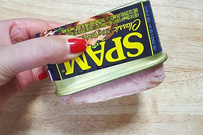뜨끈한 밥에 올려먹으면 너무 맛있는 스팸! 꼭 스팸 아니어도 통조림 햄은 캔에서 꺼내기가 조금 쉽지 않은데요. 포크로 찔러 꺼내기도 하는데 모양이 자칫 으깨질 수 있죠. 이럴 때 5초 만에 모양 흐트러짐 없이 쉽게 빼는 비법이 있어요.