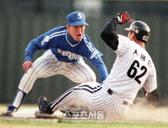계속된 2사 1·3루. 류지현의 1루 선상 강급 땅볼을 이승엽이 다이빙캐치를 하는 순간 이닝이 끝날 줄 알았지만, 박동희의 베이스커버가 늦어지면서 내야안타가 됐다. 3-3 동점.