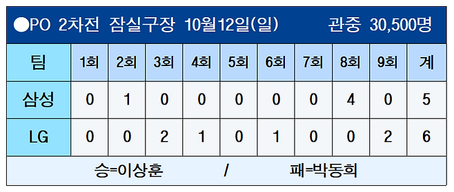 포스트시즌 전체를 놓고 보면 LG는 1990년 우승할 당시 한국시리즈에서 삼성을 4승무패로 꺾은 바 있어 한 번씩 희비가 엇갈렸다. 이번이 세 번째 가을야구 격돌이었다.