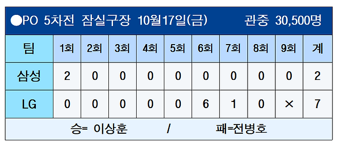 7회말 김동수의 1타점 2루타까지 더해지면서 LG는 5차전을 7-2로 크게 이겼다. 결국 3승2패로 한국시리즈 진출 티켓을 거머쥐었다.