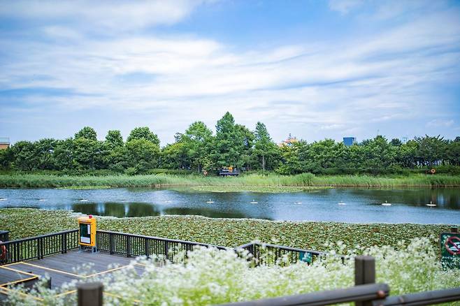 과거 김포공항 소음 피해 지역에 조성된 서서울호수공원은 비행기 소리에 반응하는 소리분수가 인상적인 혼자 사진 찍기 좋은 곳입니다.