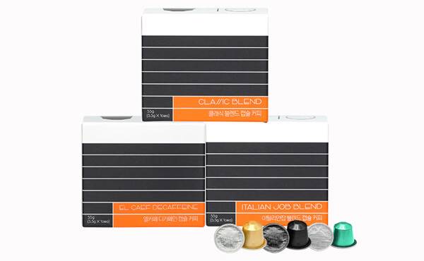엘카페는 국내에 스페셜티 커피가 생소하던 시절부터 커피 품질 향상에 집중했던 곳이다. 엘카페는 자신들을 대표하는 블렌드 원두를 간편하게 즐길 수 있는 캡슐커피를 판매하고 있다. 세계 각국의 커피 산지에서 재배한 원두를 알맞게 배합해 섬세하게 로스팅했다. 누구나 부담 없이 즐길 수 있는 ‘클래식 블렌드’, 알맞은 균형감의 ‘이탈리안잡’, 카페인 걱정 없이 즐기는 ‘디카페인’까지 세 가지 종류를 고를 수 있다. 10개들이 패키지의 가격은 10,000원이다.