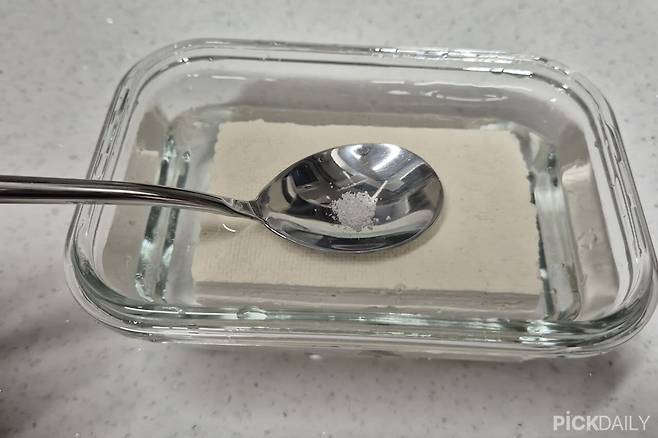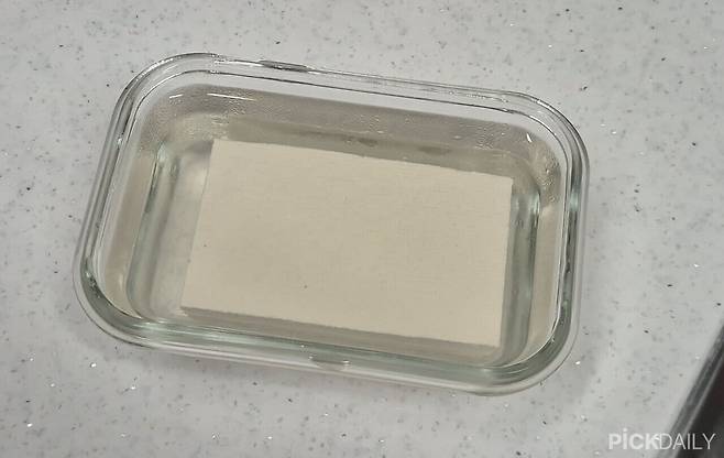 두부를 오래 보관하기 위해서는 먼저 깨끗한 용기에 담고, 차가운 물 500ml에 소금 1작은술 정도를 넣고 녹여준다. 소금 농도가 약 1% 정도 되면, 소금물이 두부 표면의 세균 번식을 억제하고 단백질이 분해되는 속도를 늦춰준다.
