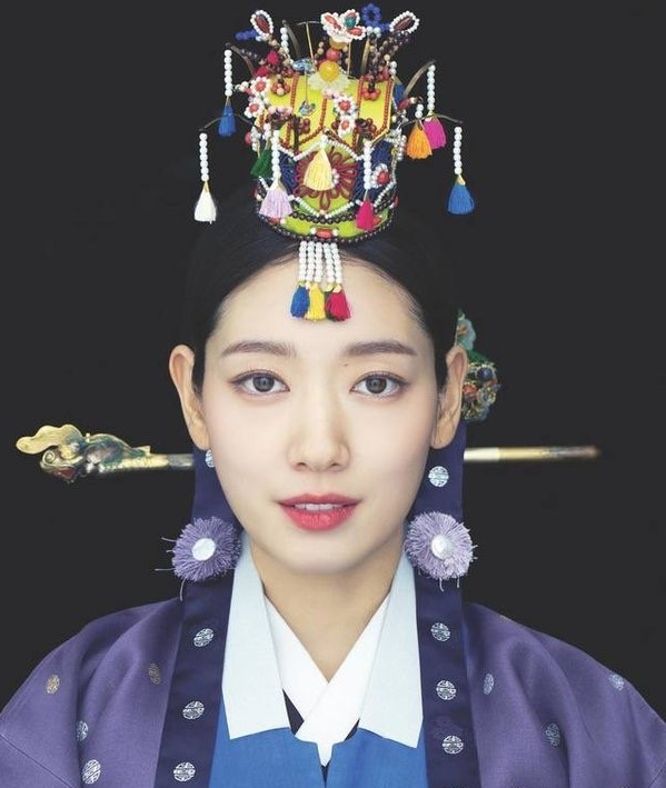 박신혜는 보라색 계열의 한복을 입고 비녀를 착용해 우아하고 고급스러운 느낌을 자아냈습니다.