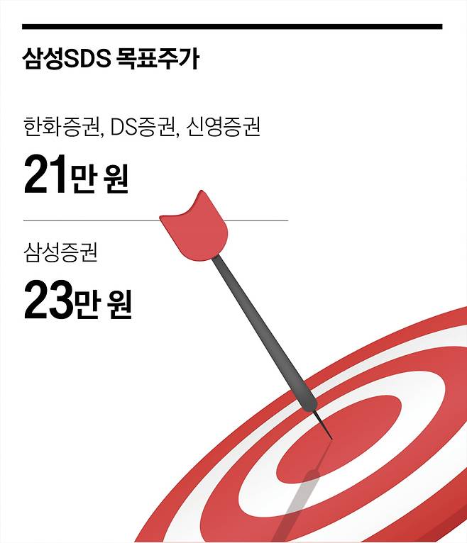 삼성증권은 삼성SDS의 목표주가를 23만 원으로 제시하며 ‘매수’를 유지했다. 12개월 예상 주당순이익(EPS) 기준 주가수익비율(PER)은 15.5배로, 글로벌 IT 서비스 기업 평균 대비 약 25% 낮은 수준이다. 신영증권 역시 “클라우드와 AI 중심의 대외 사업 확장 기회가 열렸다”며 목표주가 21만 원을 제시했다.