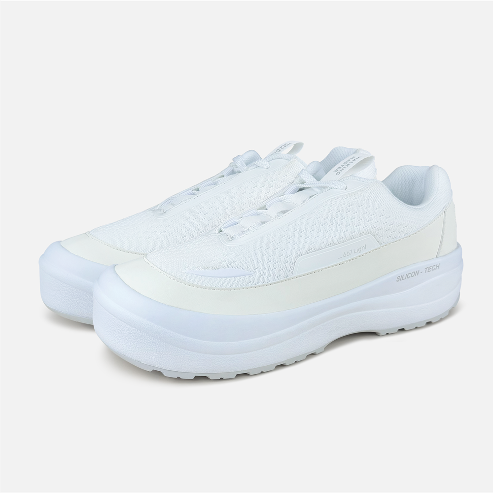 대표 제품은 무게가 372g에 불과한 ‘물컹슈즈 라이트 667′이다. 오래 걸어도 피로하지 않은 발의 편안함에 집중한 신발이다. 인솔(깔창)에 실리콘 오픈셀 기술을 적용해 충격 흡수율이 98.4%에 달한다. 실리콘 오픈셀 인솔은 내부에 공기층을 형성해 쿠션감을 극대화하고, 건조가 빨라 세균 번식 걱정 없이 쾌적한 상태를 유지한다. 무거운 신발은 오래 걸을 때 발목과 무릎에 부담을 줄 수 있는데, 물컹슈즈 라이트는 착화감이 가벼워 걸을 때 발의 피로가 덜 쌓인다.