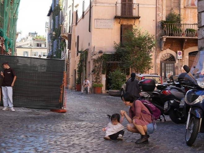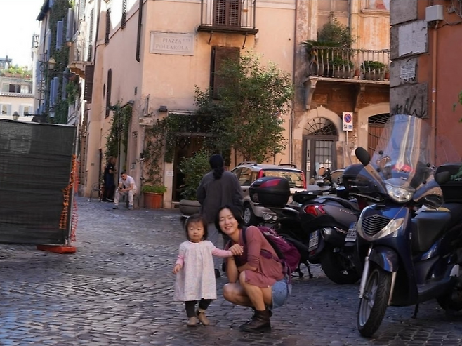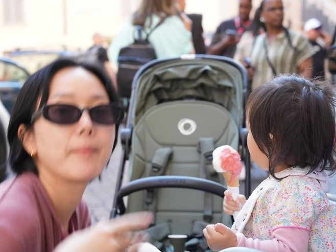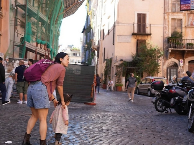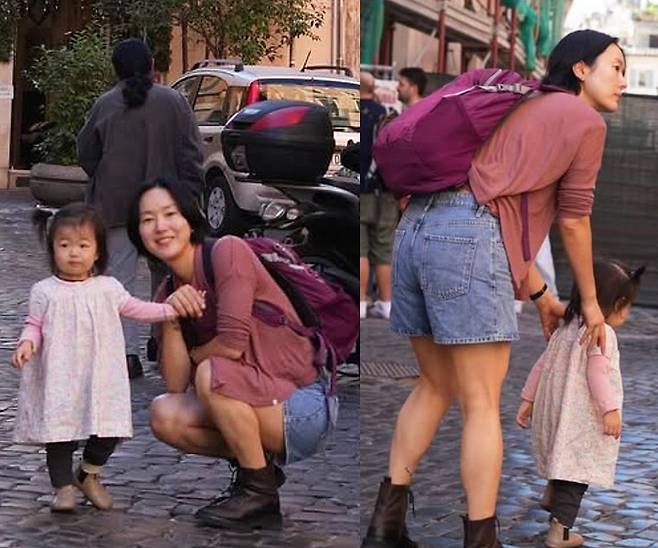 배우 윤진서가 딸과 함께한 로마 여행에서 감각적인 캐주얼룩을 선보였습니다.