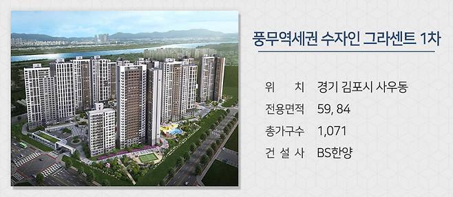 BS한양이 경기 김포시 사우동에 짓는 '풍무역세권 수자인 그라센트 1차'를 분양합니다. 전용 59~84㎡, 총 1,071가구의 대단지 입니다. 단지는 풍무역세권 도시개발지구에 들어서며 분양가 상한제를 적용 받습니다. 단지가 들어서는 풍무역세권 도시개발지구는 주거, 상업, 업무, 의료시설들이 들어서는 미니신도시 입니다. BS한양은 추후 2차 물량도 공급 두 단지 합쳐 1,700여 가구의 수자인 단지들이 들어서게 됩니다. 사우동 학원가가 도보권에 있으며 홈플러스, 이마트, 트레이더스 등의 대형 상업시설도 이용하기 쉬운 입지를 갖췄습니다.