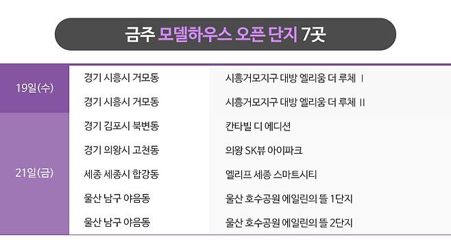 11월 3주에는 총 7개 단지의 모델하우스가 오픈 될 예정입니다.