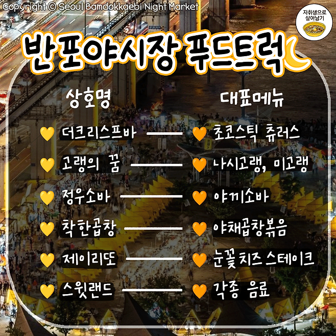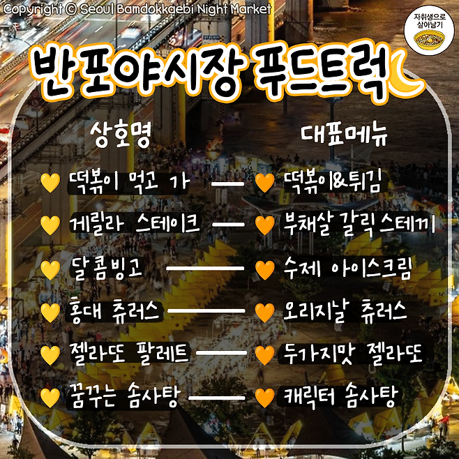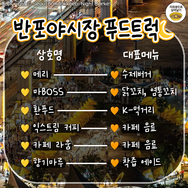 5월 7일 개장! 한강달빛야시장 푸드트럭 라인업