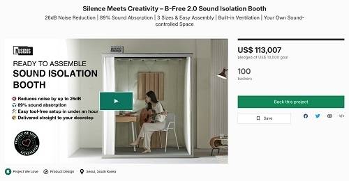 국내 DIY 방음부스 ‘뮤지쿠스’, 美 킥스타터서 11만 달러 달성