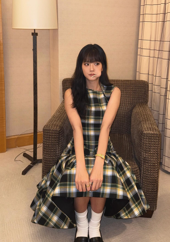 최근 공개된 사진 속 지수 님은 카메라를 응시하며 다양한 포즈를 취했는데요. 이번에는 특히 뱅 앞머리 헤어스타일로 러블리하면서도 청순한 매력을 완성했어요. 체크무늬 원피스와 함께 연출한 스타일은 마치 동화 속 주인공처럼 사랑스러웠죠.