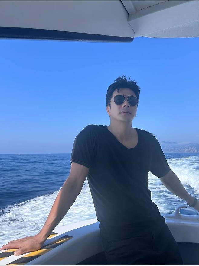 보트 위에서 선글라스를 낀 채 여유롭게 서 있는 모습은 여전히 ‘상남자’ 포스를 뽐냈고, 부부가 나란히 찍은 투샷에서는 여전한 케미와 애정을 드러냈습니다.