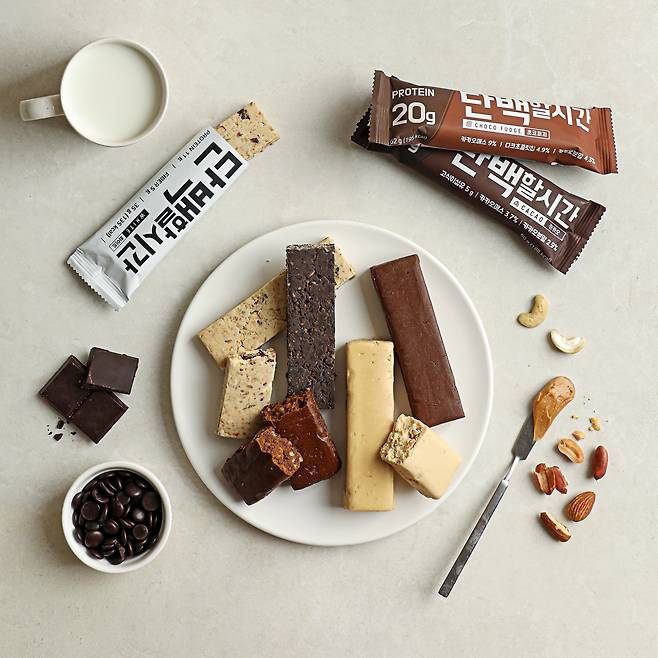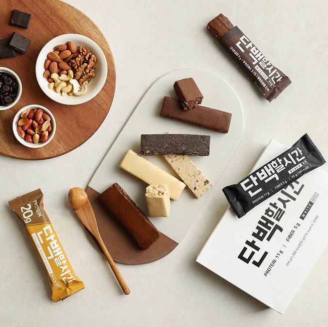 '단백할시간'은 꾸덕하면서 견과류가 오독오독하게 씹히는 것이 특징인 단백질 바인데요.