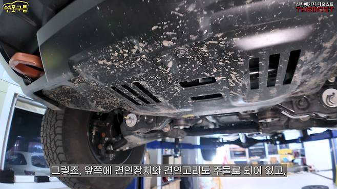 연료 탱크 하단에는 플라스틱 보호 커버가, 미션과 드라이브 샤프트에는 마운트 겸용 보호대가, 전면부에는 철제 언더커버가 적용됐다. 특히 X-Pro 트림에 적용된 전후방 견인 고리는 단순한 철판이 아닌 두껍고 튼튼한 주물 재질로 제작되어 실제 험로 탈출 시 충분한 강성을 발휘할 수 있도록 설계됐다.
