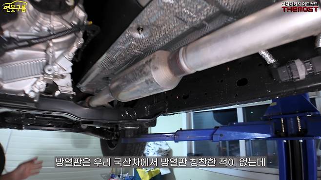 머플러 전체를 따라 열기를 차단하는 방열판이 빈틈없이 적용된 점도 주목할 만하다. 이는 국산차에서는 보기 드문 수준으로, 제네시스급 이상에서나 볼 수 있었던 세심한 배려다. 추가로 4륜 구동 트랜스퍼 케이스 등 구동계 소음의 실내 유입을 막기 위해 해당 부위 주변에 흡음재가 적용되었다.