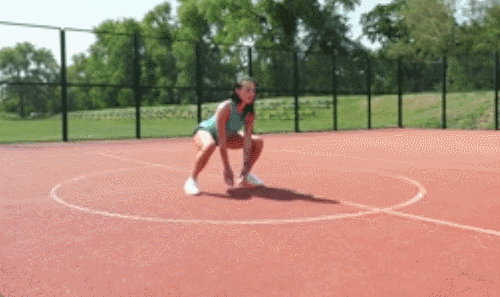 바닥에 서서 준비합니다. 왼쪽으로 점프하면서 스쿼트 동작을 수행합니다. 이때 손을 바닥으로 내려 터치합니다. 오른쪽으로 점프하면서 다시 스쿼트 동작으로 연결합니다.