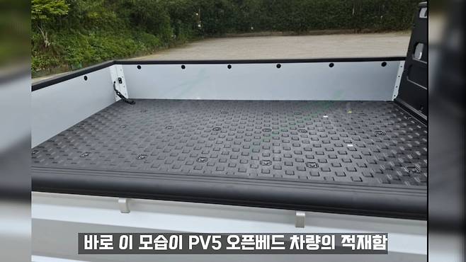 PV5 오픈베드 모델의 가장 큰 특징은 평평하게 설계된 적재함 바닥이다. 일반적인 픽업트럭에서 흔히 볼 수 있는 휠 하우스 돌출부가 없이 바닥 전체가 평평하게 마감되어 있어 공간 활용도가 높은 것으로 확인됐다. 이는 적재함 문의 경첩 부분이 바퀴보다 위쪽에 위치한 디자인에서 이미 예상됐던 부분이다.
