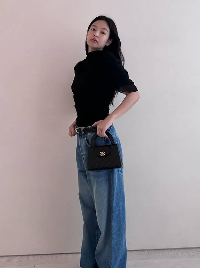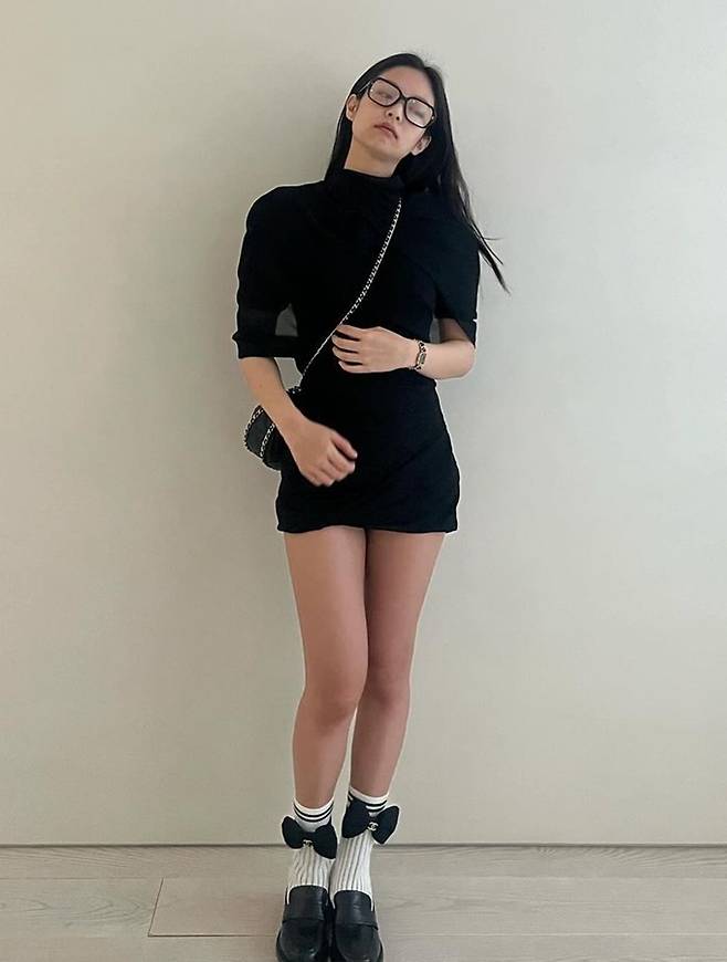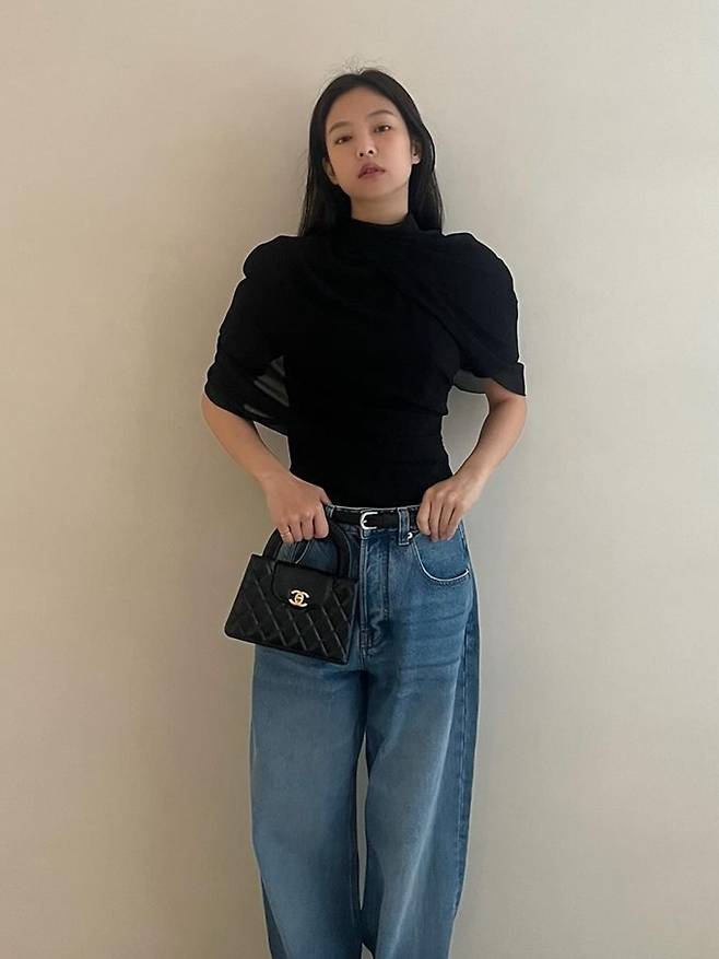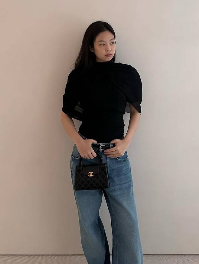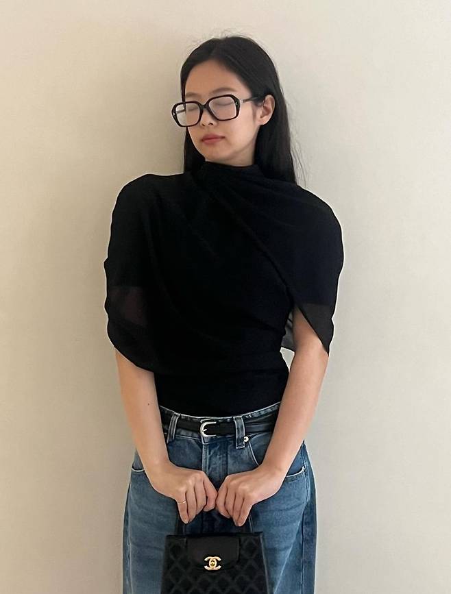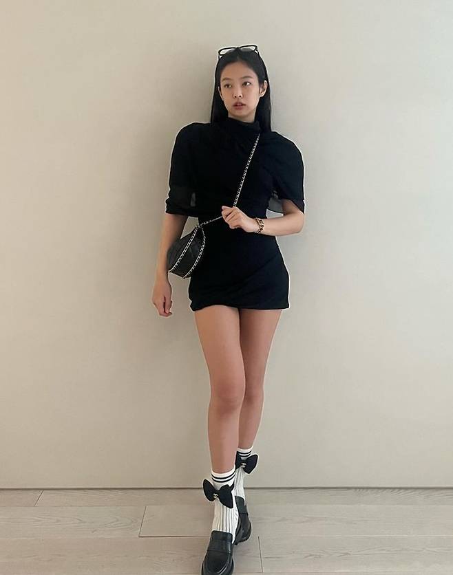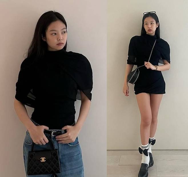 공개된 사진 속 제니는 블랙 케이프 니트 윈피스로 뽐낸 2가지 스타일링으로 눈길을 끌었다. 블랙 케이프 니트 원피스와 데님 팬츠를 매치한 편안하면서도 스타일리시한 섬머룩을 연출했다.