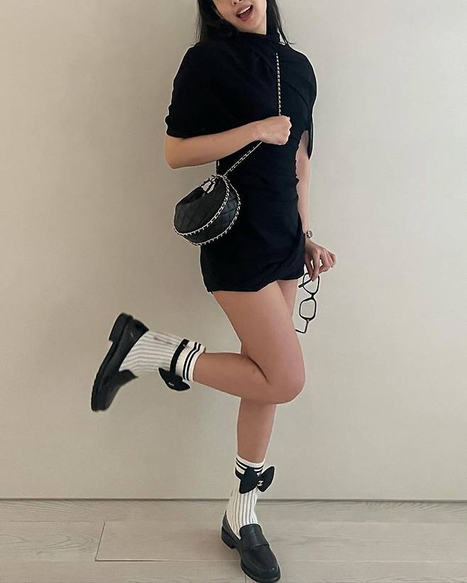 또 케이프 니트 원피스는 귀여운 리본 디테일의 양말과 단화를 매치해 러블리한 원피스룩으로 각기 다른 매력을 빛냈다.