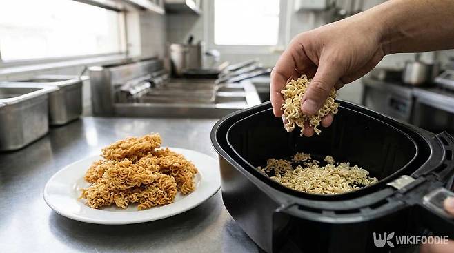 에어프라이어 간식 중 가장 손이 덜 간다. 봉지라면을 잘게 부숴 그대로 넣고 180도에서 5~7분만 돌리면 끝이다. 조리 후 식히는 과정에서 더 바삭해지기 때문에 꺼내자마자 바로 먹는 것보다 잠깐 두었다가 먹는 편이 낫다. 다만 라면 자체에 나트륨이 많은 만큼 자주 먹기보다는 가끔 즐기는 간식으로 두는 게 좋다.