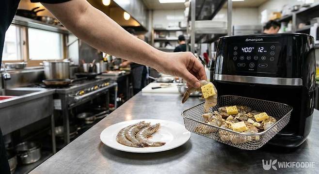 손질된 새우를 용기에 넣고 버터를 작게 잘라 올린 뒤 180도에서 10분 굽는다. 버터가 녹으면서 새우 표면을 코팅해 촉촉함이 유지된다. 마늘을 함께 넣으면 풍미가 진해지고, 파슬리 가루를 마지막에 뿌리면 색감도 살아난다.