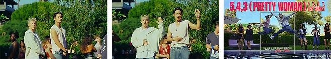 타이틀 곡 ’5, 4, 3 (Pretty woman)’의 뮤직비디오는 클럽, 해변, 옥상, 마당 잔디 등 다양한 장소에서 벌어지는 군무 장면이 반복적으로 나타납니다. 특히 미국 LA의 명소 롱비치🏖️에서 촬영된 댄스 씬의 뜨거운 분위기는 이들의 자유분방한 매력을 배로 증가시키는 듯하는데요. 트레일러 영상에서도 제시되었던 ‘사람과 음악이 주는 에너지’🔋라는 메시지를 계속해서 드러내고 있습니다.