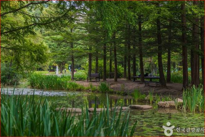 작은 연못을 끼고 조성된 메타세쿼이아와 전나무 숲, 돌다리와 오솔길은 그 자체로 감성 충만한 산책 코스가 되어주죠. 숲 사이 곳곳에 놓인 벤치에 앉아 물소리를 들으며 휴식을 취하다 보면 어느새 마음도 맑아지는 느낌입니다.