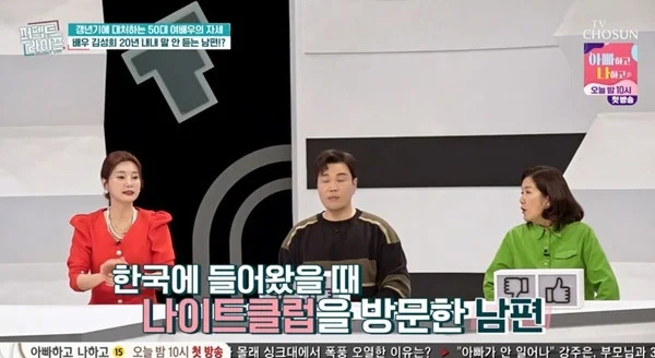 하지만 어느 날 백화점에서 다른 여배우를 마주친 남편이 예전 김성희를 꼬실 때와 똑같은 눈빛으로 쳐다보며 다가갔고, 그 순간 그녀는 모든 걸 직감했다고 한다.