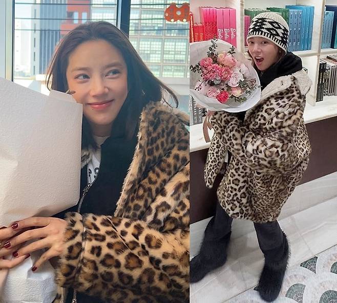 공개한 사진에서 손담비는 니트 비니에 블랙 집업 재킷을 입고 호피 무늬 코트를 걸친 주말 브런치룩으로 따뜻하면서도 러블리한 외출 스타일을 선보였다.