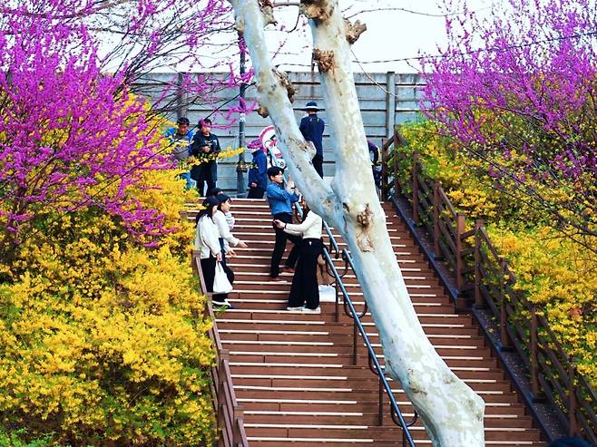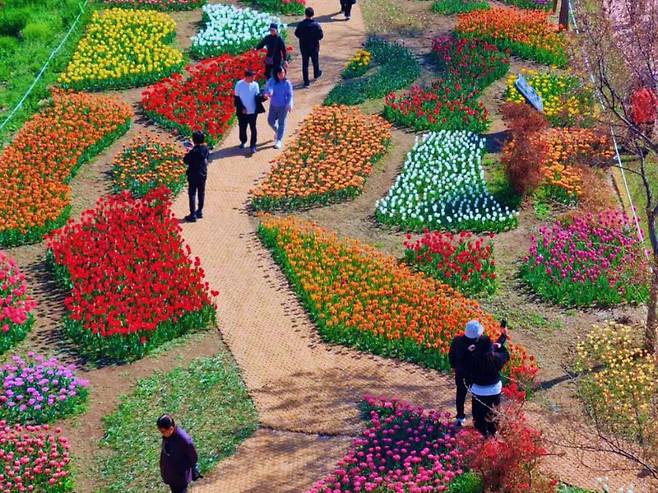 올해 봄에는 약 8만 본의 튤립이 식재됐다. 이른바 ‘튤립길’이라 불리는 이 구간은 붉은색, 노란색, 보라색 등 다채로운 색상의 튤립이 어우러져 장관을 이루고 있다고 구는 전했다.