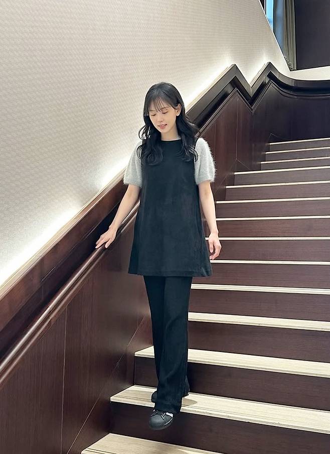 공개한 사진에서 강한나는 반팔 니트 스웨터에 블랙 베스트 티셔츠를 레이어드하고 블랙 팬츠를 매치한 외출룩으로 우아하면서도 단아한 모습을 드러냈다.