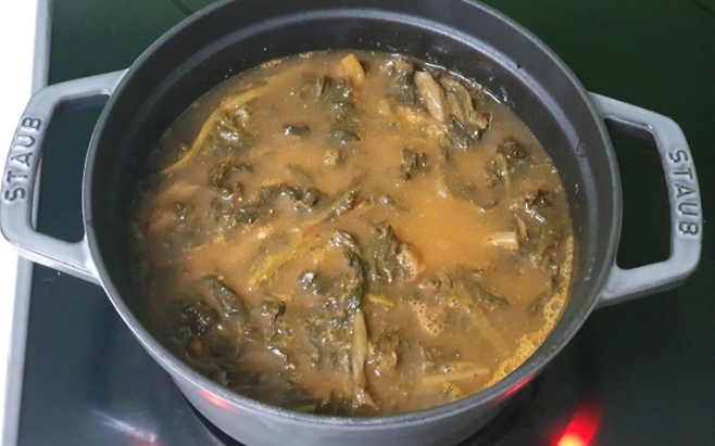 들기름에 볶은 시래기에 마늘, 된장, 무, 대파를 넣고 끓이면 해독과 면역 증진에 탁월한 ‘간 강화 시래기국’이 완성됩니다.