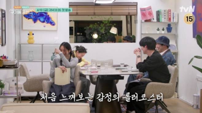 혼자가 익숙해진 만큼 낯선 또래들과의 한집살이에 두려움도 내비치는 가운데, 6명의 하우스 메이트로 떠들썩한 집안 풍경이 눈길을 끈다. 갑작스러운 최다니엘의 눈물에 하우스 메이트들이 깜짝 놀라는가 하면 식탁에 둘러앉은 장도연, 이다희, 경수진이 모두 눈물을 보이기도 해 이들에게 어떤 일이 벌어지는 것일지 궁금증이 치솟고 있다. 뿐만 아니라 다 같이 흥겹게 춤을 추며 텐션이 오른 모습과 장근석과 경수진 사이에 감도는 냉기, 둘 사이에서 눈치를 보는 안재현의 극과 극 분위기도 포착돼 다양한 일상을 공유하며 벌어지는 다이내믹한 에피소드와 그 속에서 피어날 케미스트리도 기대케 한다.