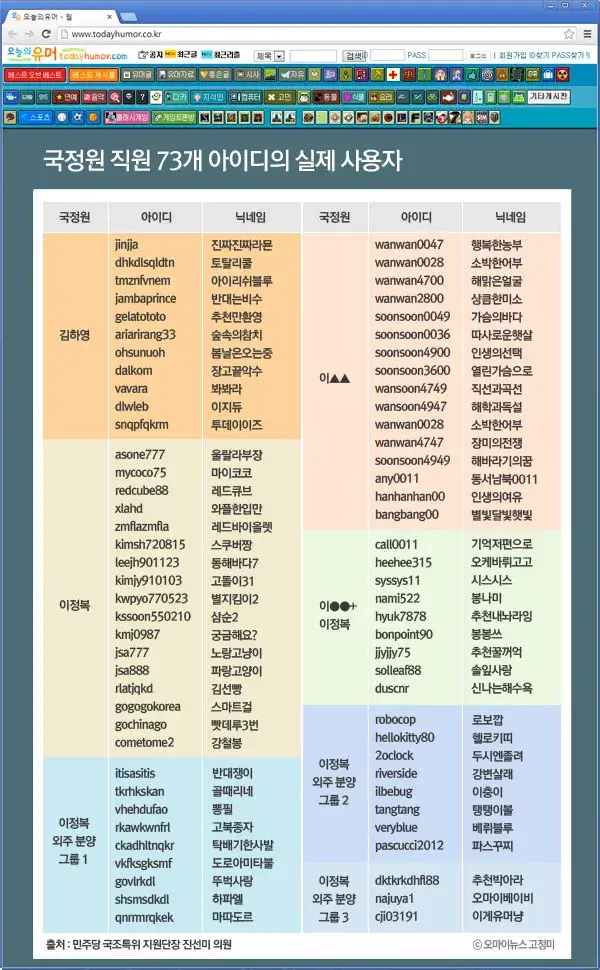 아이디 73개로 오늘의 유머를 무너트린 국정원