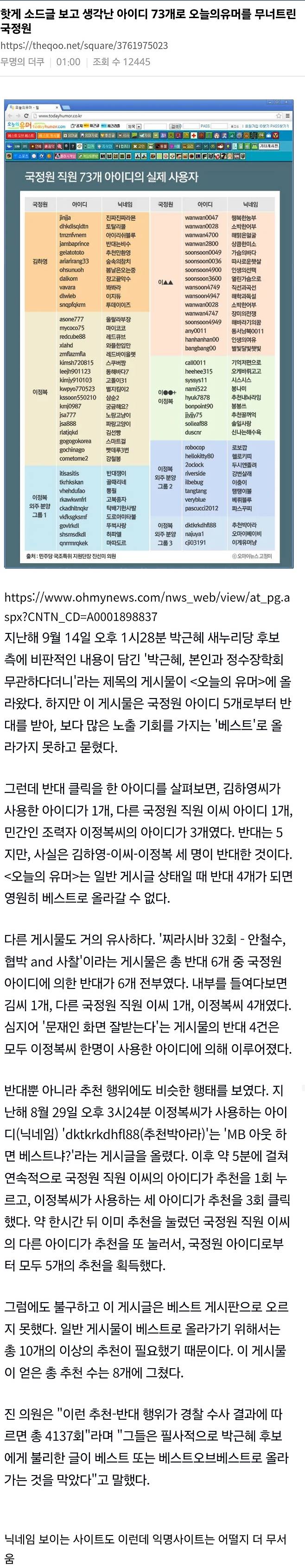 - 핫게 소드글 보고 생각난 아이디 73개로 오늘의유머를 무너트린 국정원