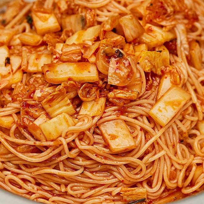 리얼푸드의 추천 레시피는 김치를 올린 ‘김치 비빔국수’입니다. 잘 익은 김치를 송송 썰어서 매콤새콤한 양념에 버무려보세요. 신선한 오이 고명과 함께 식감 좋은 중면에 올리면 입맛 돋우는 비빔국수가 완성됩니다.
