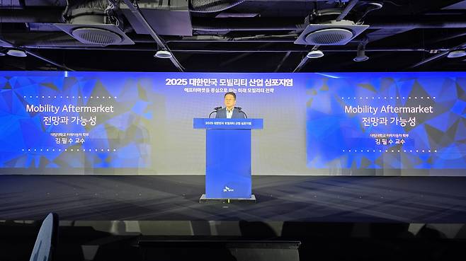 또 다른 발제를 맡은 김필수 대림대학교 교수는 애프터마켓의 확장 가능성과 미래 전략을 제시했다. 김 교수는 "애프터마켓은 차량 인도부터 폐차까지 전 주기를 아우르며, 국내 시장만 150조원 규모이고 향후 20배까지 확대될 수 있다"고 분석했다. 이어 "휴머노이드 로봇, 도심항공모빌리티(UAM) 등 새로운 이동 수단이 부상하고 있으며, 자율주행과 전동화 기술의 발달은 기존 산업 간 경계를 허물고 새로운 융합 비즈니스 모델을 만들어낼 것"이라고 내다봤다.