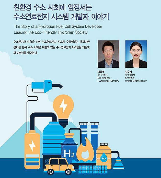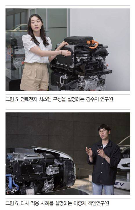 <이중재 책임연구원> 수소전기차 수출과 수소연료전지 시스템 공급은 당사가 친환경 사회로의 전환을 가속화하고 글로벌 자동차 업계에서 위상을 높이는 효과를 가져왔다. 그러나 완성차 판매와 달리 시스템을 공급하는 건 제품에 따라 사용 조건이 달라지기 때문에 다양한 요소를 고려해야 한다. 가령 공급에 앞서 고객사와 기술 논의를 진행하고 요구 조건에 맞춰 패키지나 소프트웨어를 변경하는 작업이 필요하다.
