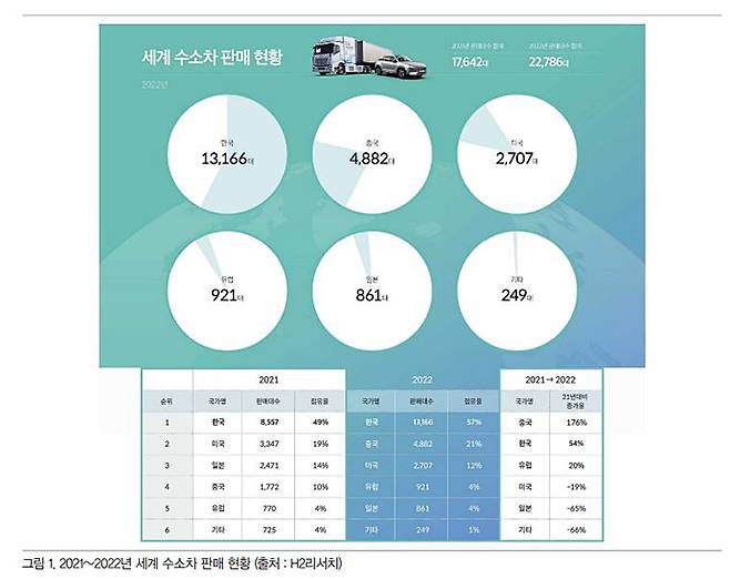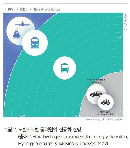 <김수지 연구원> 탄소중립을 위해 에너지의 생산부터 활 용까지 다양한 변화가 산업 전반에 일어나고 있다. 내연기관 자동차에서 전기차로의 전환 또한 이러한 변화 중 하나이다. 하지만 배터리가 자동차의 탈탄소화 문제를 모두 해결하기 는 어려울 수 있다. 소형 및 단거리 운행을 주로 하는 승용차 분야에서는 배터리 기술이 충분한 역할을 하지만, 장거리 운 행이 요구되는 대형 차량에서는 배터리만으로는 필요성능을 만족시키기 어려워 수소연료전지 기술을 접목하려는 시도가 많은 편이다. 이러한 시장 환경으로 인해 수소연료전지 시스 템을 모듈화하여 판매하는 제조사나 연료전지 기술 자체를 사업화하는 사례들이 빠르게 증가하는 추세이다.