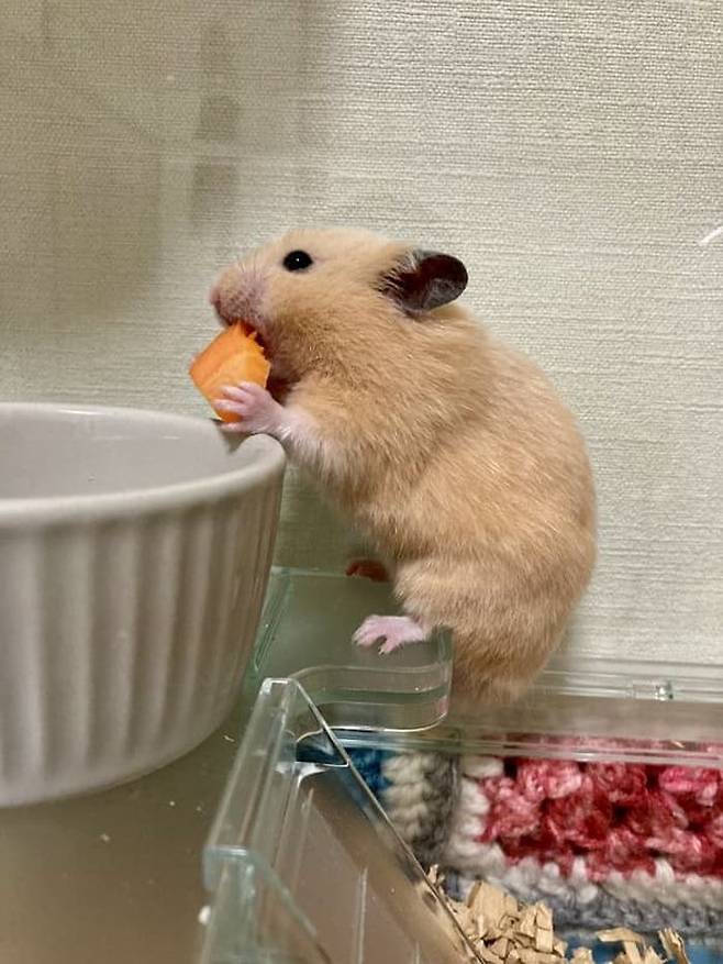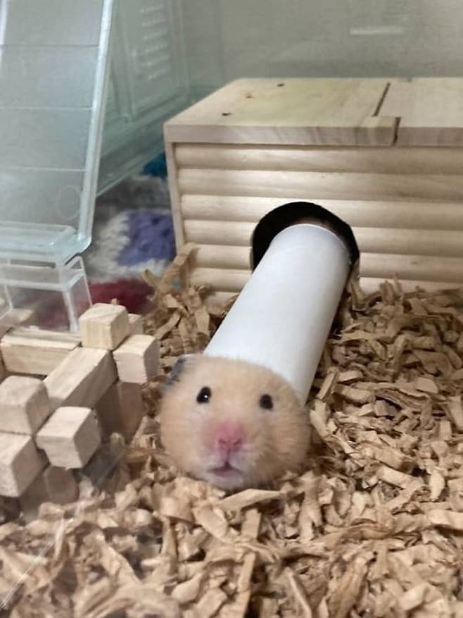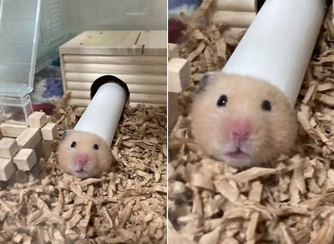 세상에 이렇게 엉뚱하면서도 귀여울 수 있을까. 장난감처럼 가지고 놀라는 뜻으로 휴지심을 햄스터 우리 안에 집어 넣어준 집사가 있습니다.