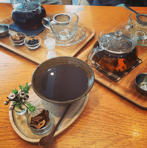 티테라피는 자신의 체질에 맞는 차를 고를 수 있는 테라피 컨셉의 카페로 향이 과하게 섞이지 않도록 전통 재료를 4가지 이하로만 사용하며, 모든 재료는 직접 볶거나 건조하여 사용합니다.