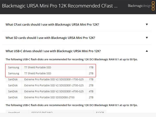 그러나 이번에 출시된 shoppingmode 삼성 T7 쉴드는 개선된 쓰기 성능으로 인해 많은 호평을 받고 있고, 블랙매직디자인도 12K 해상도까지 촬영 가능한 URSA Mini Pro 12K 추천 USB-C 드라이브 리스트에 1TB와 2TB 이름을 올렸다.