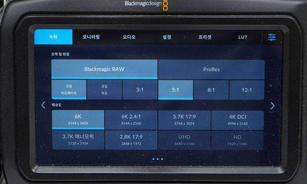 이 가운데 BRAW 포맷은 고정 비트레이트 기준으로 3:1부터 12:1 압축 비율이 적용되는데, 3:1 비율은 좀더 빠른 내부 CFast 2.0 카드를 사용할 때만 기록이 가능하고 외장 SSD는 보통 5:1 이상의 압축 비율을 권장하고 있다.