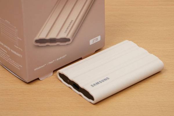 T7 쉴드의 표면은 외면 충격에 강한 합성 고무 소재와 알루미늄 본체의 조합으로 이뤄지고 모서리 부분도 보호할 수 있어 최대 3m 높이에서 떨어뜨려도 견딜 수 있는 내구성을 가졌다. 또한 IP65 등급의 방진/방수 지원으로 야외에서 비가 내릴 때나 먼지가 많은 장소에서 외장 SSD를 사용할 때 좀더 안심할 수 있다.